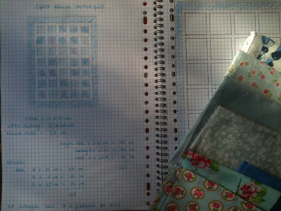 and a little overview of the patterns of the stars and the fabrics I want to use, on a background of plain white cotton.